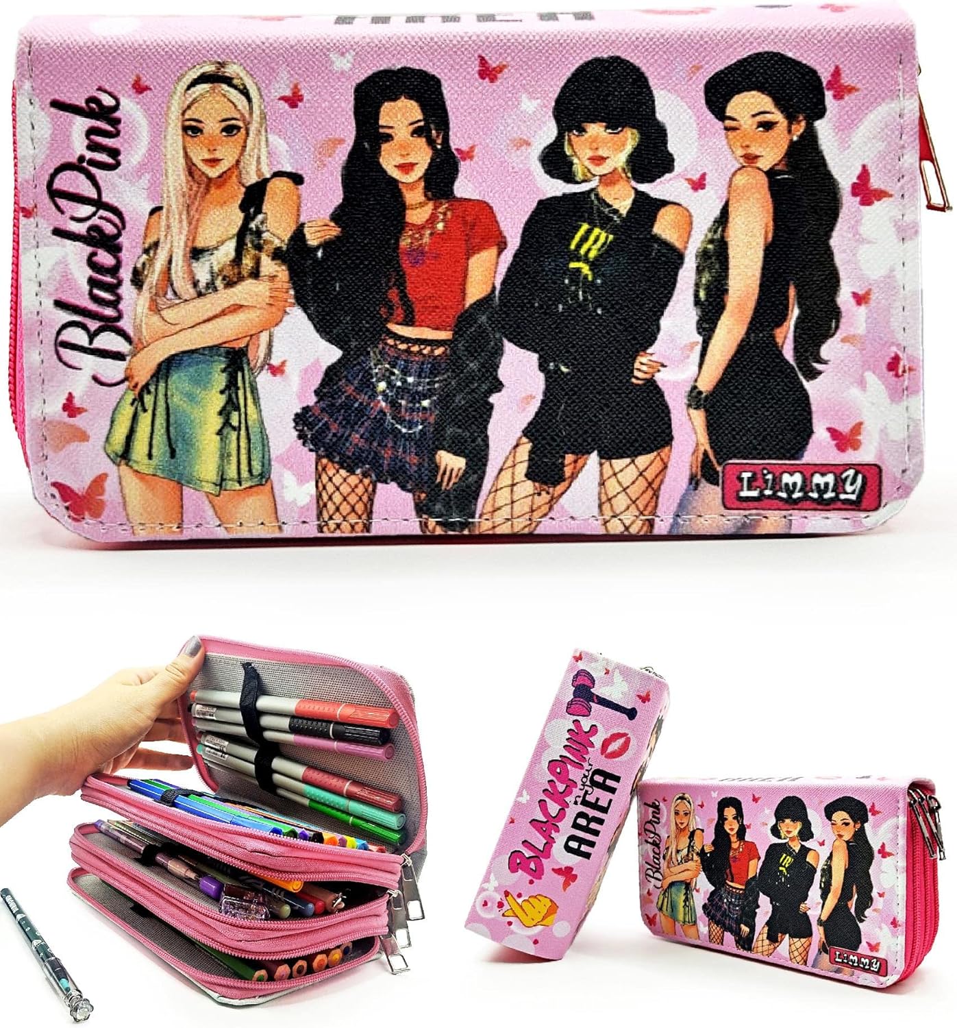 malzeme: Deri Kalem Kutusu Pink Organizer Kalemkutu Vegan Deri Üç Bölmeli Kalemlik-Pembe