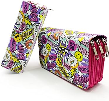 Kalem Kutusu Wow Oops Boom Smile Desenli Kawai Organizer Kalemkutu Vegan Deri Üç Bölmeli Kalemlik