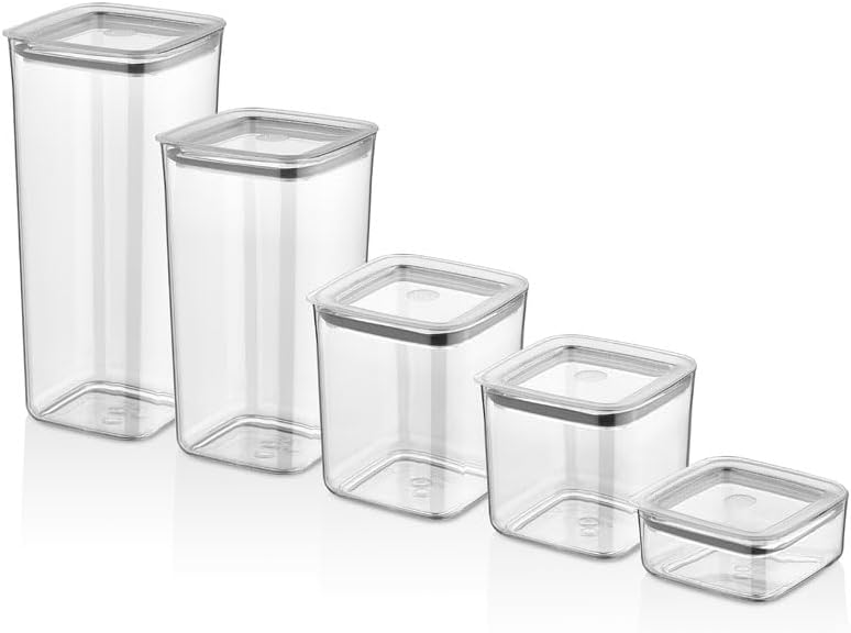 Kare Saklama Kabı, 5'Li Set (1700 Ml+1200 Ml+1000Ml+700Ml+350 Ml)