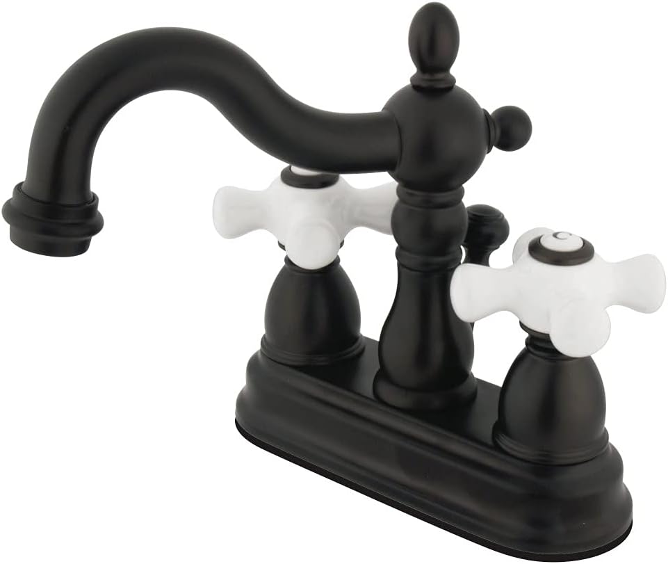 Prinç Yapı Dayanıklı Yıkayıcısız Kartuş Eşleşen Son Açılır Tahliye İçerir Emzik Boşluğu: 3-5/8 ” Emzik Erişimi: 4-13/16 “Güzel Sanatsal İşçilik KB1605PX 10,5 cm Lavabo Bataryası Porselen Çapraz Kulplu, Yağlı Bronz Ovuşturdu Bronz, Yağlı Bronz