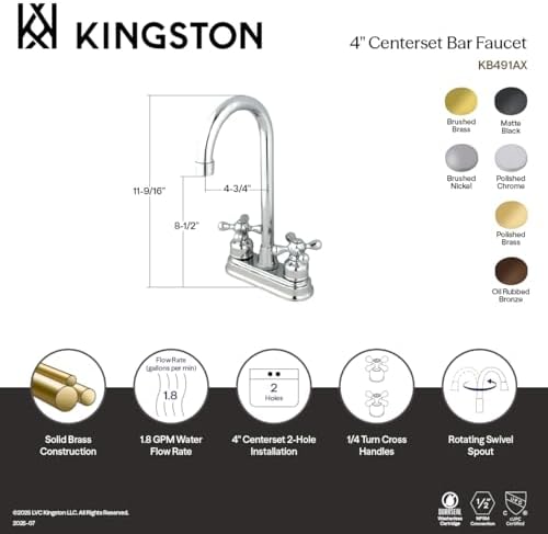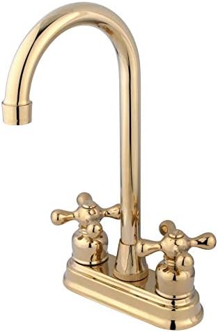 Sağlam Pirinç Yapı Duraseal Yıkamadan Kartuş Döşeme Montajı 10,16 cm Merkezi Set 2 Delikli Kurulum 60 PSI'da 1,5 GPM/5,7 LPM Su Akış Hızı Standart 1/2″ IPS Bağlantısı KB492AX Bar Musluğu, Cilalı Pirinç, 10,64 cm Ağız Erişimi