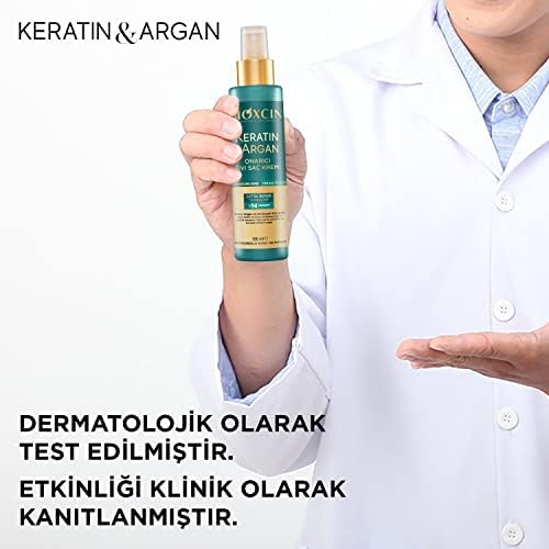 Keratin & Argan Onarıcı Sıvı Saç Kremi – Hidrolize Keratin, Argan Yağı ve BioComplex B11 İçeren Durulanmayan Saç Bakım Spreyi – 150 ml – Yıpranmış Saçlar İçin