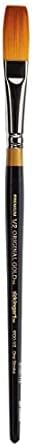 Altın renkli Taklon filaman Filaman, yumuşaklık ve optimum emilim için pişirilmiştir Tüm ortamlar için ideal Düz ve yumuşak fırça başlığı Altın renkli ve parlak, siyah bir sapa sahiptir ve gümüş nikel kaplama kıskaçlara sahiptir KingArt Orijinal 9100 Serisi Premium Sanatçı Fırçası, Taklon One Çizgi Boyutu: 1/2
