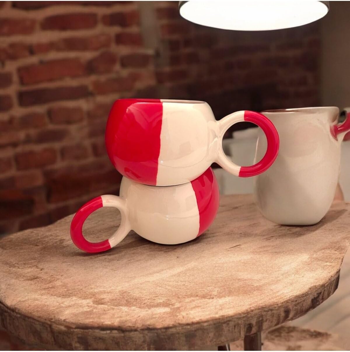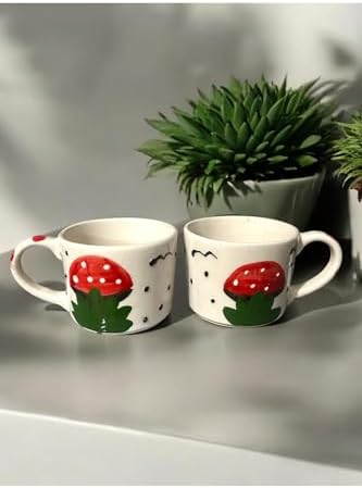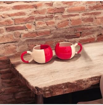 KIRMIZI BEYAZ MODEL ÇAY KAHVE HEDİYELİK 2 Lİ EL YAPIMI SERAMİK KUPA