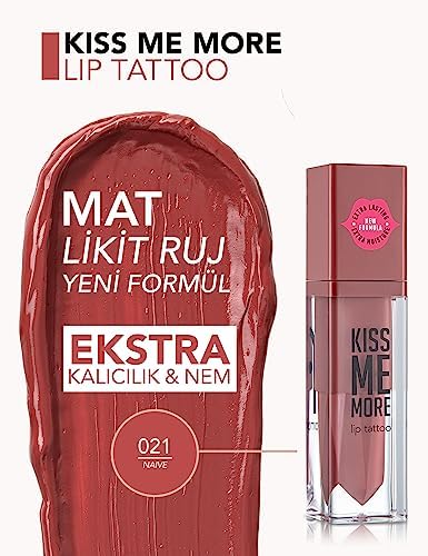 Uzun süre kalıcı formülüyle gün boyu tazelik sağlar Dudakları besler ve nemlendirir si dokulu mat görünüm Kiss Me More Yüksek Pigmentli & Mat Bitişli Nemlendirici Likit Ruj 009 INTENSE