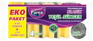 Temizleme işlemini etkin ve verimli şekilde gerçekleştirir Dayanıklı ve uzun süre kullanılabilen yapı Kolay kullanım sağlayan tasarım Klasik Yeşil Sünger Oluklu 4'lü + 2’li Ovma Teli