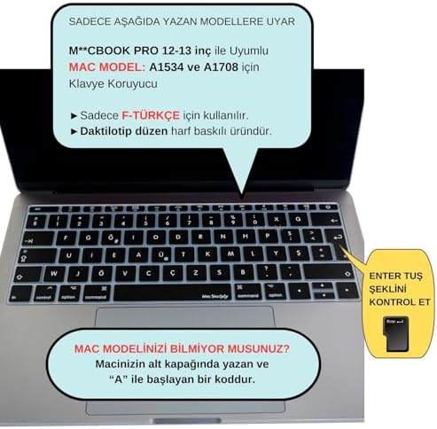 için Klavye Koruyucu Seçerken, Model numaranızı ve Klavyenizin ENTER Tipini Kontrol Ettiniz mi? ⚠️ Model Numaramı Bilmiyorum? – Cihazınızın Alt Kapağında Üst Orta Kısımda yazar Model : AXXXX ⚠️ Türkçe F Dizayn baskılı, ESKİ F-Türkçe Daktilo Düzeni Baskılı üründür. ⚠️ Klavyede ENTER Tuşunuz, Görseldeki ürünün ENTER Tuşu ile AYNI OLMALIDIR. ✔️ Pro 13inç A1708 Ters L- UK Enter. Klavye Koruyucu Kılıf F-TÜRKÇE ESKI DAKTILO DUZENI UK-TERS L- Enter Tipi Pro 13inç A1708, A1534 12inç Uyumlu, Ultra İnce Hafif Yıkanabilir Klavye Filmi Siyah
