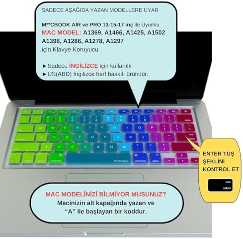 Air 13 İnç Klavye Koruyucu Silikon İnce Yıkanabilir ⚠️ Model Numaramı Bilmiyorum? – Cihazınızın Alt Kapağında Üst Orta Kısımda yazar Model : AXXXX ⚠️ İngilizce Klavye,US-ABD İngilizce, US- harf baskılı, İngilizce ABD Dizayn Baskılı üründür. ✔️ Pro 13 inç (ESKİ Ethernet+CDROM Girişli) A1278 (2009-2012) Dikdörtgen Yatay Enter. ✔️ Pro 13 inç Retina (ESKİ HDMI Girişli) A1425-A1502 (2012-2015) Dikdörtgen Yatay Enter. Klavye Koruyucu Silikon İnce Klavye Kaplama Film Air Pro Eski USB li Model 2008-2017 Uyumlu US-ABD İngilizce Dizilim Renkli Baskı Pembe Yeşil