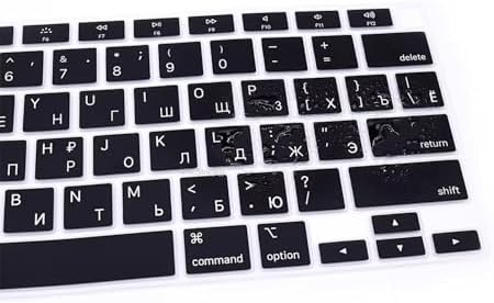 Klavye Koruyucu Silikon Kılıf RUSÇA BASKILI US AMERİKAN RETURN Enter Tipi Air M1 13inç A2337,A2179 id Uyumlu, Kaymaz Yıkanabilir Siyah