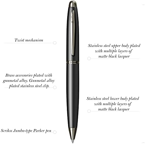 Paslanmaz çelik kapak ve gövde Krom kaplama klips, halka ve uç Çevirmeli otomatik mekanizma Dev tükenmez refil özel kutusunda Knight 88 Tükenmez Kalem Mat Siyah