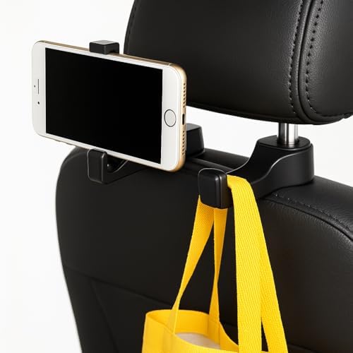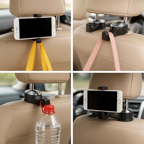 Koltuk Arkası Telefon Tutucu ve Araç Askılığı – 360° Dönebilen Ayarlı Headrest Mount – Araç İçi Tablet/Telefon Tutucu + Çanta Askısı – Uyumlu