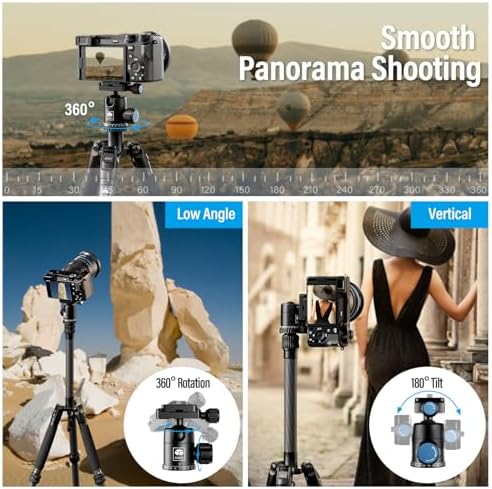 Kompakt 54 inç Hafif Karbon Fiber Taşınabilir Seyahat Kamerası Standı 360 ° Panorama Top Kafası ve Arca Hızlı Bırakma Plakası Yük Kapasitesi 4 kg'a kadar (Gezgin 5C)