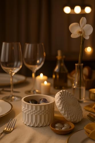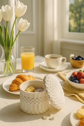 TASARIM: Siyah beyaz gövde, kristal kapak; modern ve lüks detaylarla şıklık katar. SET İÇERİĞİ: 2 adet kapaklı kutu – Çap 9 cm | Yükseklik 8,5 cm. MALZEME: Dayanıklı kompozit + kristal kapak; uzun ömürlü ve estetik. KULLANIM ALANI: Salon, banyo, makyaj masası, mutfak veya ofis; dekoratif obje ve düzenleyici olarak. EL İŞÇİLİĞİ: Detaylı işçilik; her parçada küçük doku ve desen farklılıkları bulunabilir. Kristal Kapaklı Dekoratif Kutu – Modern & Zarif Tasarım