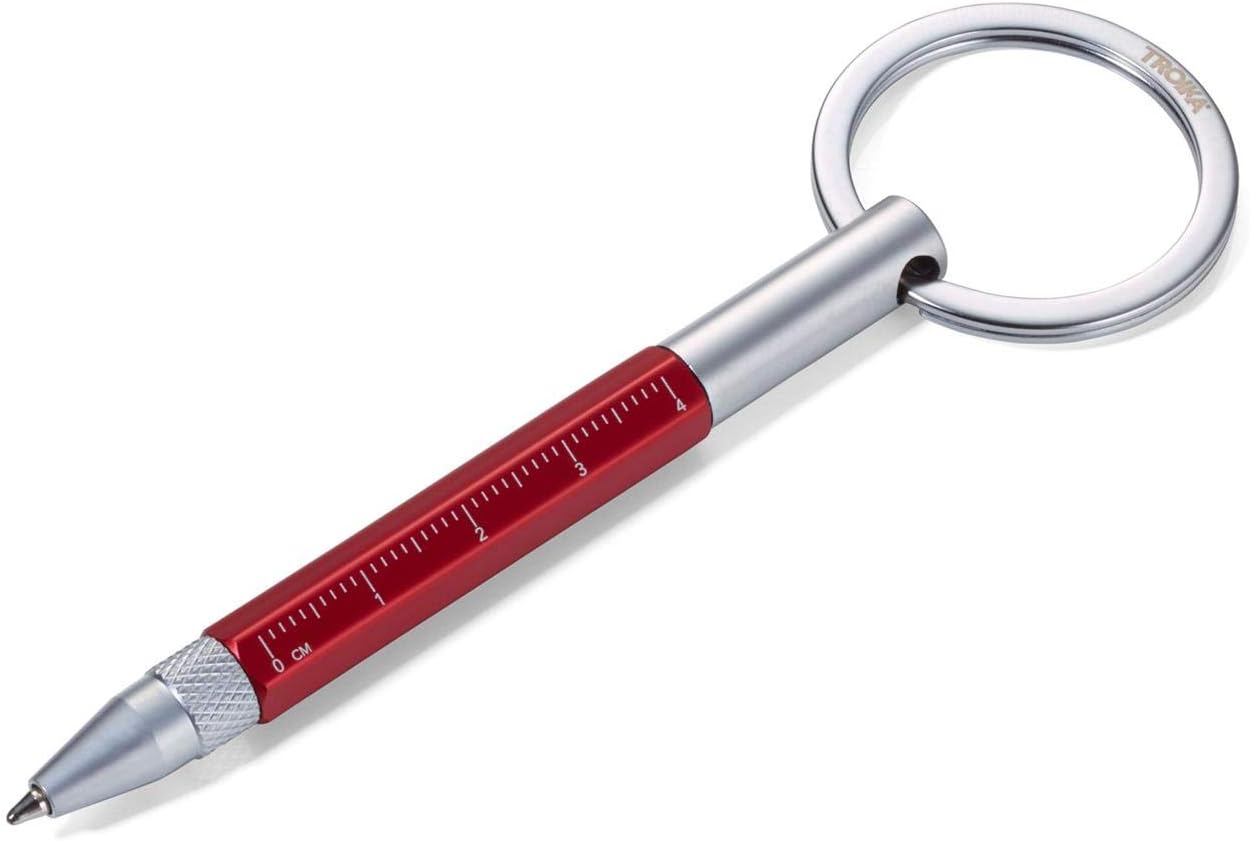 Multifonksiyonel mini tükenmezkalem & anahtarlık Dokunmatik ekranlar için kauçuk tepe, cm ve inç cinsinden cetvel, düz/ yıldız tornavida, tükezmezkalem ve anahtarlık Kırmızı lake kaplama prinç gövde ve gümüş renkli akseauarlar Kyp25Rd Kyp25Rd Micro Anahtarlık Tükenmez Kalem Kırmızı
