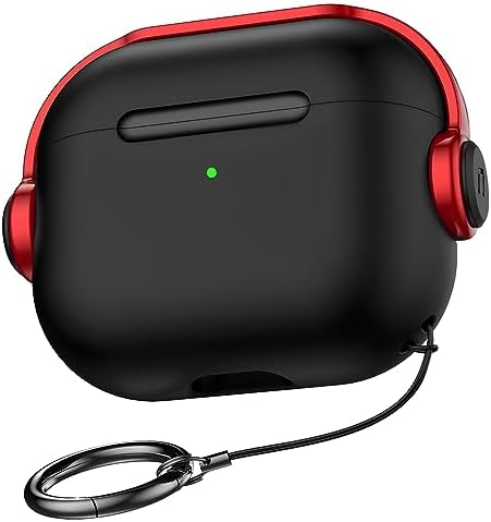 Üstün Koruma Kapaklı Tasarım Stand Özelliği Metal Halkalı LABS Pro/Pro 2 DjPods Sert Malzemeli Kilitli Kapak Askı Aparatlı Pro/Pro 2 Uyumlu Kılıf (Siyah – Kırmızı)