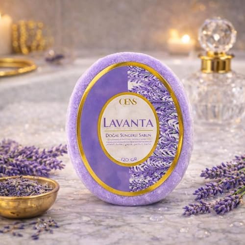 dogal sünger Lavanta Doğal Süngerli Sabun, Lavanta Kokulu, Duş için Zengin Köpüklü, 120g