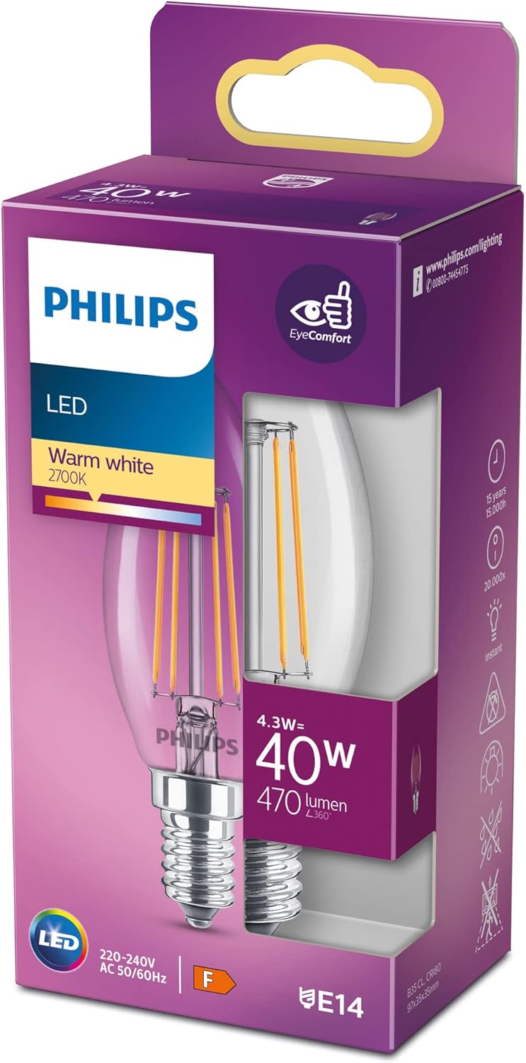 tarzı, modern LED teknolojisi Uzun kullanım ömürlü ampuller Morötesi veya Kızılötesi yok LED 40W B35 Led Mum Filament Ampul, 2700K Sarı Işık, E14 İnce Duy, Dim Edilmez