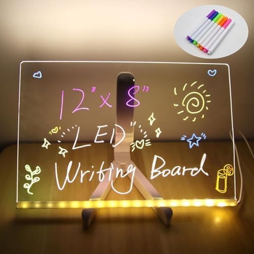 LED Işıklı Akrilik Yazı Tahtası – 20×20 cm Şeffaf Masaüstü Not Panosu, USB Bağlantılı, 7 Renkli Kalem ve Stand Dahil, Çocuklar İçin Eğlenceli Yazı Tahtası, Masa Dekoratif Ledli Işık Panosu (20×30 Cm)