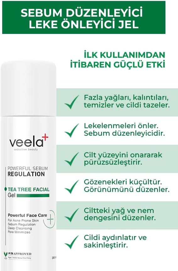 Leke Karşıtı Yüz Temizleme Jeli – Tea Tree Özlü, Sebum Düzenleyici, Cilt Lekelerini Önleyici Jel
