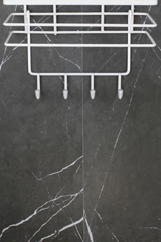 Lif Ve Kese Askılığı Beyaz Termoplastik Kaplamalı Banyo Köşeliği, Duş Rafı Ve Duş Askılarına Uyumlu Beyaz
