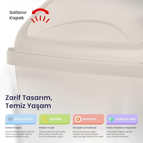 Life Vittorio Çöp Kovası – 10 Litre, Sallanır Kapaklı, Sağlam ve Hijyenik Atık Kutusu