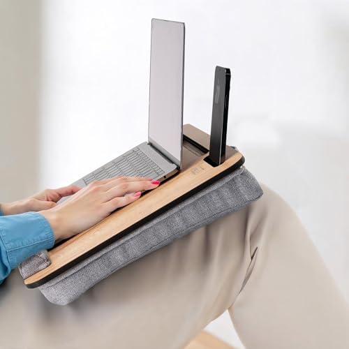 Yatak Üstü Laptop Sehpası – Dizüstü Bilgisayar için Sehpa – Yatakta Kullanım İçin Laptop Standı – Minderli ve Taşınabilir Laptop Sehpası – Ev Ofis İçin Uygun – 16''e Kadar Uyumlu – Tablet ve Telefon Tutuculu Çok yönlü laptop sehpası dilediğiniz yerde rahatça laptop, çalışma, çizim, tablet sehpası olarak kullanılır. Geniş Yüzey Alanı: Laptop tepsimiz 43 cm x 33 cm ölçülerindedir ve 16 inç’e kadar olan laptoplarla uyumludur. Geniş yüzeyi sayesinde laptop, mouse, telefon, tablet ve diğer aksesuarlarınızı rahatlıkla yerleştirerek konforlu bir şekilde çalışabilir veya ders çalışabilirsiniz. Sürdürülebilir ve Dayanıklı Malzeme: Laptop masamız, 8 mm MDF’den üretilmiştir. Bu çevre dostu ve sağlam malzeme, laptop ve diğer eşyalarınızın ağırlığını rahatlıkla taşıyarak bükülme veya çökme olmadan uzun ömürlü kullanım sunar. Tablet ve Telefon İçin Kullanışlı Yuvalar: Laptop tepsisi, bir tablet ve bir telefon yuvasına sahiptir. Cihazlarınızı kolayca erişilebilir şekilde konumlandırabilir, düşme ya da kayma riski olmadan güvenle kullanabilirsiniz. Ergonomik Tasarım: Dizüstü sehpa, konforunuz düşünülerek tasarlanmıştır. Hafif eğimli yüzeyi boyun ve omuzlardaki gerginliği azaltarak ideal bir izleme açısı sunar. Minderli alt kısmı dizinize uyum sağlayarak uzun süreli kullanımlarda ekstra rahatlık sağlar , mouse kullanımı sırasında bileğinize destek sunan yumuşak bir bilek yastığı sayesinde mouse'u daha rahat ve kontrollü kullanabilir. -LS014 Minderli Laptop Sehpası (Meşe Gri)
