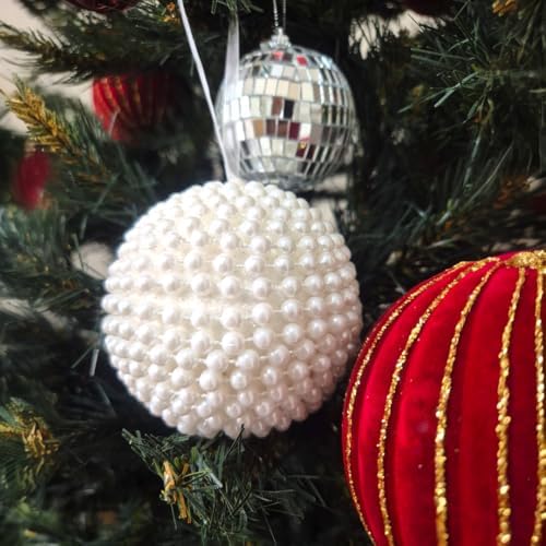 LÜKS YILBAŞI TOPU 8CM BEYAZ İNCİ TOP SÜS 3LÜ AST7269