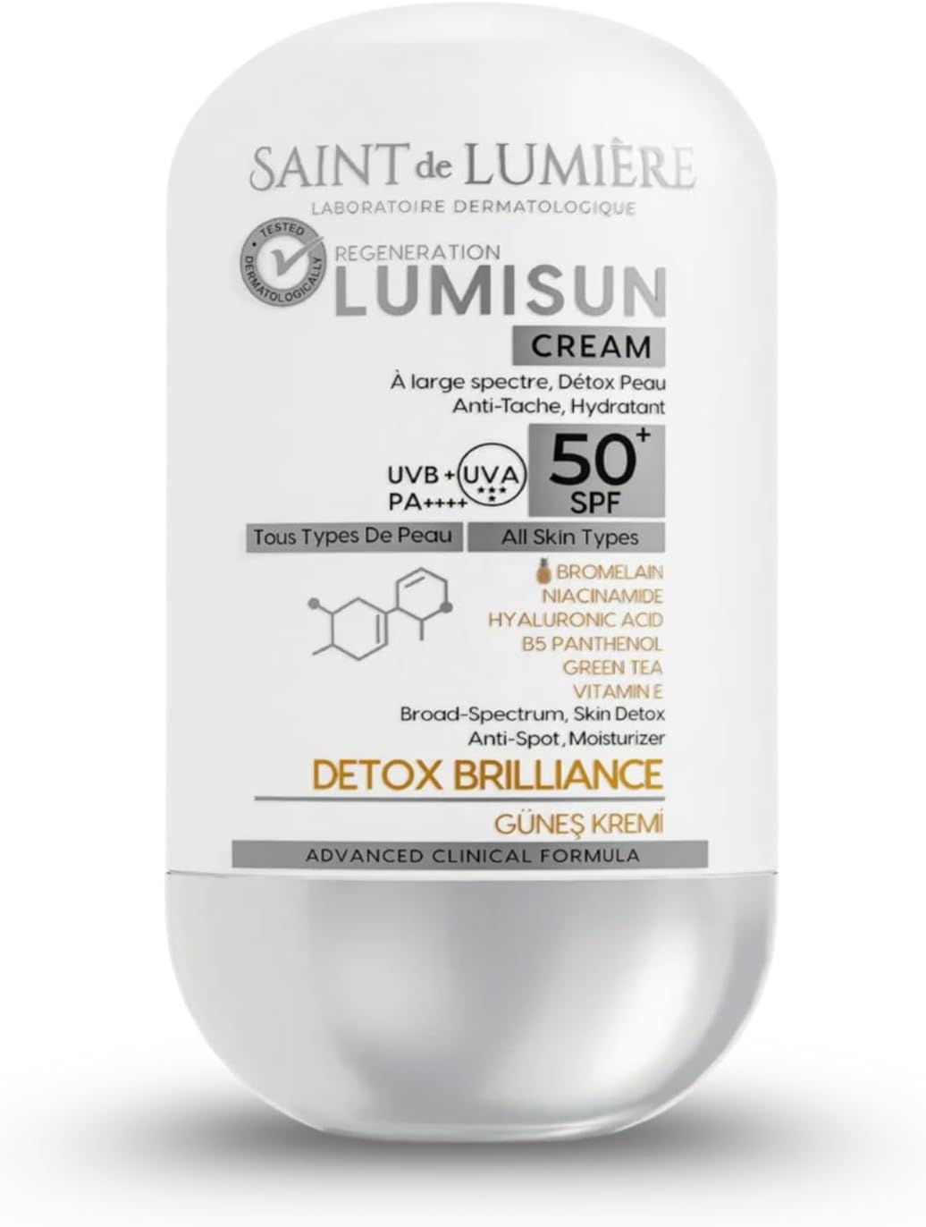 LUMISUN Detox Brilliance SPF 50+, 50 ml Güneş Kremi – Bromelain, , E vitamin, Hyaluronik