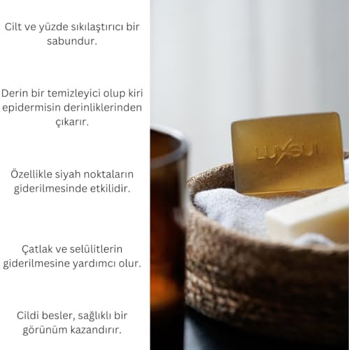 Cildi besler, sağlıklı bir görünüm kazandırır.Özellikle siyah noktaların giderilmesinde etkilidir. Luxsui%100 Doğal Kil Özlü Sıkılaştırıcı Sabun