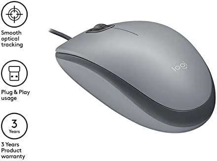 M110 USB Kablolu Sessiz Mouse, Dizüstü Bilgisayar, Notebook, PC ve Mac için Quiet Click teknolojili, USB-A Bağlantılı, Sağ ve Sol Elle Kullanıma Uygun, Gri