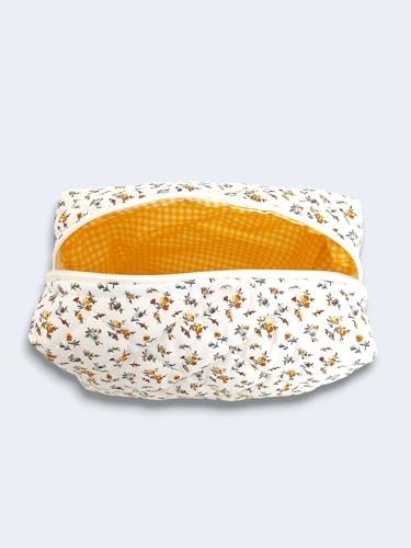 Fulia makyaj çantası, renk ve deseniyle zarif ve şık bir tasarıma sahiptir. Kozmetik ürünleriniz için ideal boyutlarda tasarlanmıştır. Geniş iç hacmiyle makyaj malzemelerinizi düzenli bir şekilde saklamanızı sağlar. Kapitone yapısı sayesinde dayanıklı ve uzun ömürlü kullanım sunar. Seyahatlerde kolay taşıma için hafif ve pratik bir yapıya sahiptir. Ölçüler: Genişlik:19cm, Yükseklik: 12cm, Derinlik: 9cm. Makyaj Çantası | Makeup Bag | Kapitone Bakım Seyahat Kozmetik Çantası (Beyaz-Sarı)