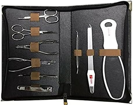 1 adet suni deri siyah set çantası Paslanmaz çeliktir. Sette 9 adet ürün bulunmaktadır 1 adet deri çanta 1 adet ayak törpüsü 1 adet et makası 1 adet tırnak makası 1 adet kaş makası 1 adet et pensi 1 adet tırnak pensi 1 adet siyah nokta çıkarıcı 1 adet et sıyırıcı tırnak törpüsü 1 adet cımbız Manikür-Pedikür Seti 1 Paket (1 x 0.422 g) FR-194