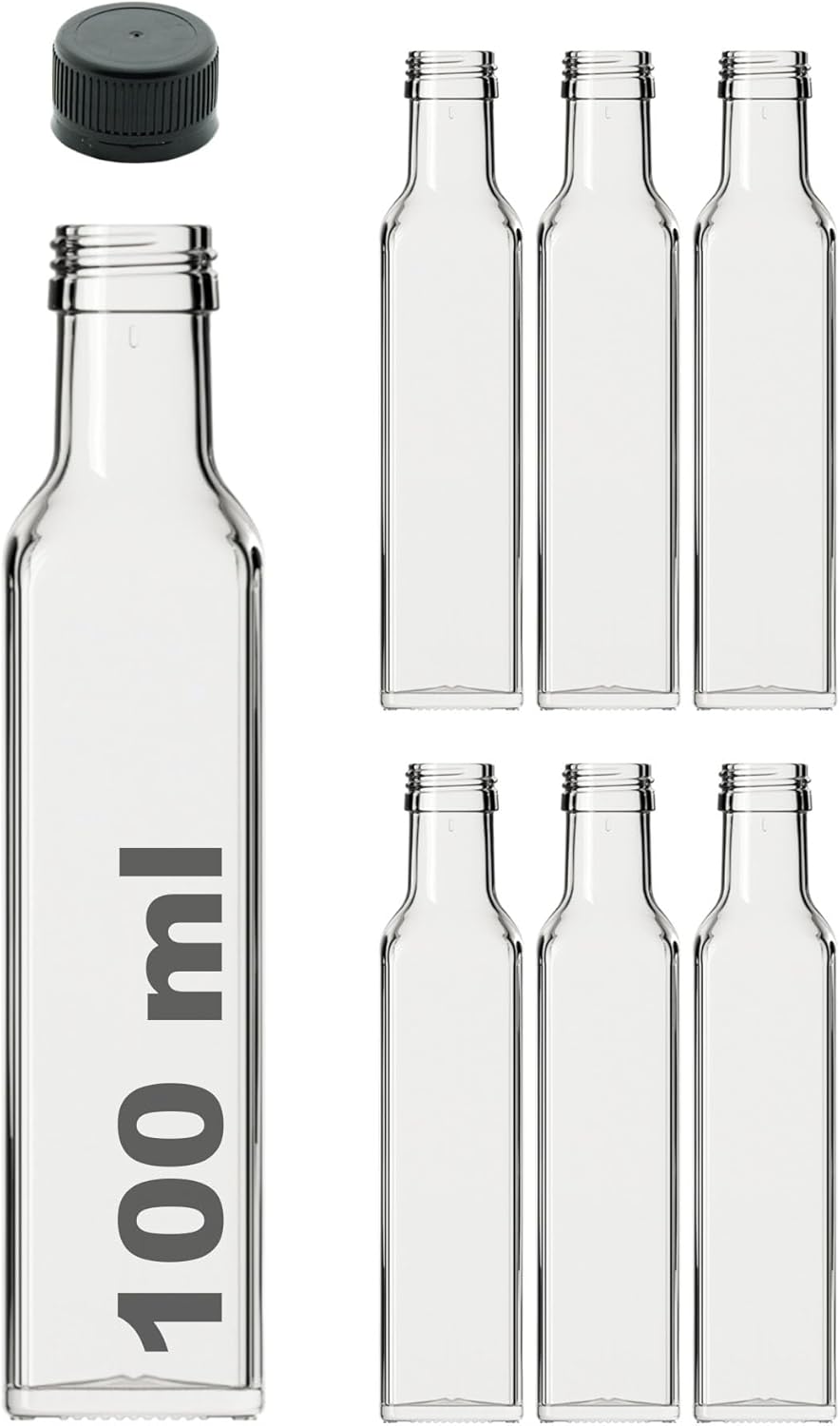 Maraska Şeffaf 100 ml Sızdırmaz Kapaklı Boş Cam Şişe 6 Adet