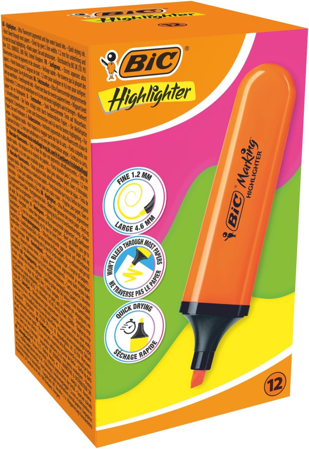 Su bazlı, ultra floresan renkli mürekkep Hızlı kuruyan mürekkep, kağıt, faks ve fotokopileri işeretler Kesik ucu 1.2 mm kalınlığında ince ve 4.6 mm kalınlığında kalın çizme imkanı sağlar Kağıdın arkasına geçmez Turuncu renkte 12'li kutu olarak satılmaktadır. Marking Flat Higlighter Fosforlu Kalem 12'li Kutu, Turuncu Fosforlu Kalem, Su Bazlı, Hızlı Kuruyan Mürekkep
