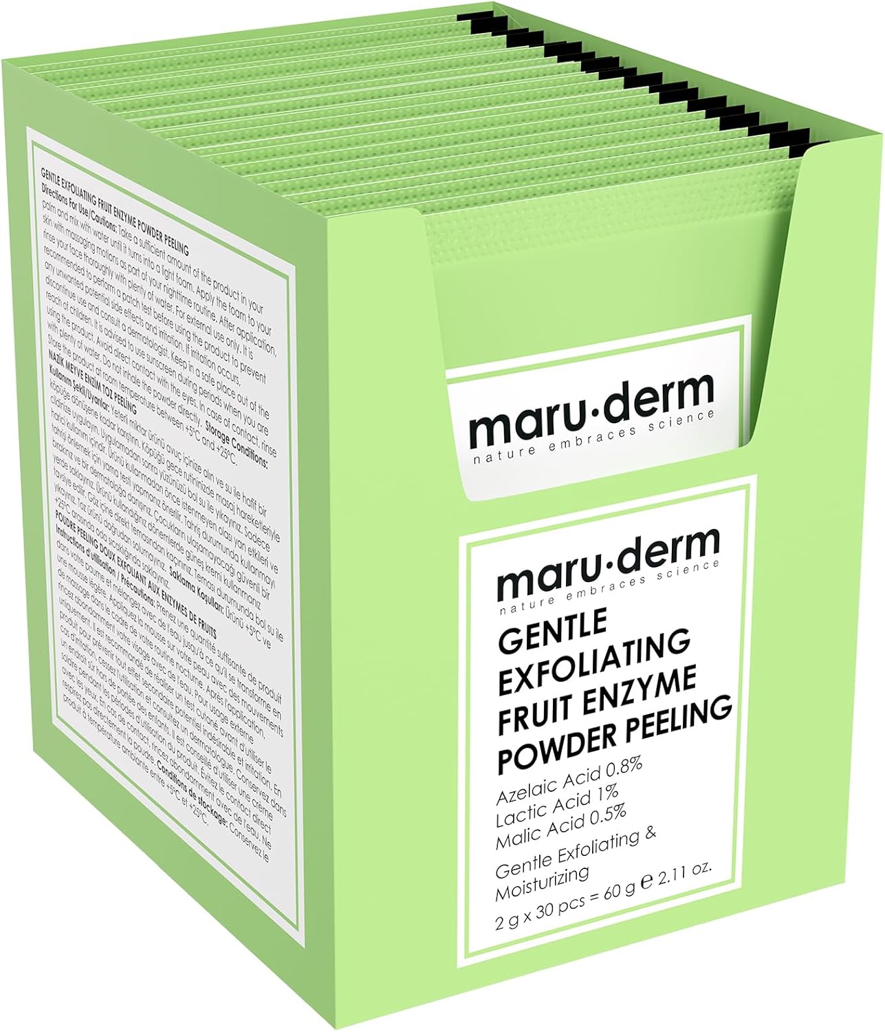 Meyve enzimi içerikli Ölü hücre arındırıcı Papaya özü katkılı Maru.Derm Hassas Ciltler için Meyve Enzimli Pudra Peeling 60 g