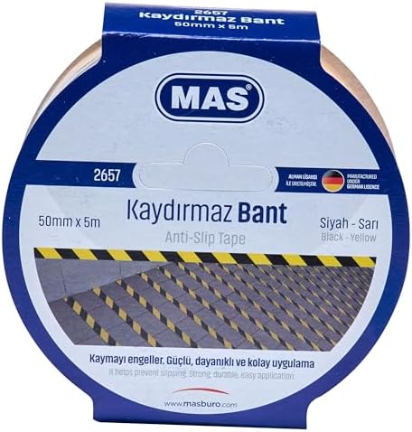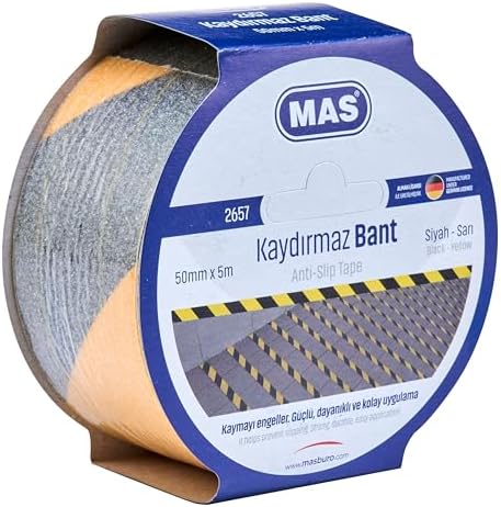 Kolay uygulama imkanı sunan yapıştırma özelliği mevcuttur MAS 2657 Kaydırmaz Bant, Sarı & Siyah