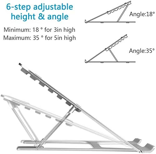 Geniş Uyumluluk: Tüm 9 inç – 16 inç dizüstü bilgisayarlarla uyumlu ayarlanabilir dizüstü bilgisayar tutucu sehpası. 6 ayarla yüksekliği ayarlanabilir: 3 inç ila 5 inç kaldırma sunan dizüstü bilgisayar tutucumuz, yükseklik ayarı, rahatlık ve yaralanmalardan korunmak için ekran yüksekliğini göz seviyesine yükseltmenize olanak tanır. Bilgisayarınızda uzun saatler boyunca çalışırken duruşunuzu iyileştirmeye yardımcı olur. Havalandırmalı yapı: Havalandırmalı dizüstü bilgisayar sehpası, çökmeleri azaltmaya yardımcı olmak için dizüstü bilgisayarların daha soğuk çalışmasına yardımcı olur Katlama tasarımı: Kullanılmadığında katlayabilirsiniz. Taşınabilir ve ince olduğu için seyahatler için mükemmel bir tutucu ayağıdır. Masa için Ayarlanabilir Dizüstü Bilgisayar Standı 11-16 inch