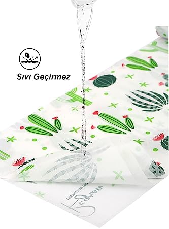 Lamineli Kağıt Masa ve Aktivite Piknik Örtüsü Kullan At Sıvı Geçirmez 3 Rulo (Rulo içi:10 adet) KAKTÜS 100x120cm