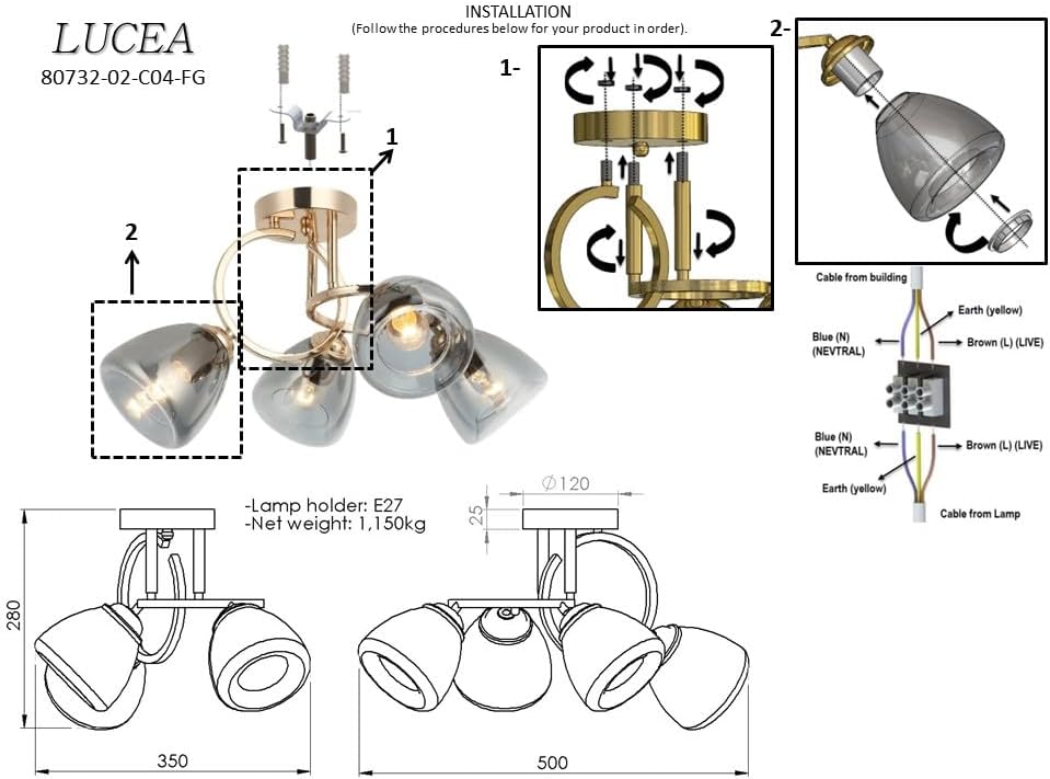 Aydınlatma Dekorasyon Ev yaşam MASTAR 4'LÜ ALTIN PLAFONYER 4XE27