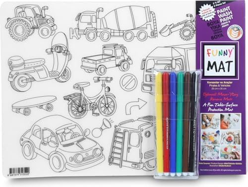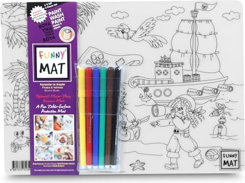 Mat Akademi Çocuk Keçeli Kalem Boyama Matı Yıkanabilir Mat Korsanlar & Araçlar, 25X35Cm, 6'Lı Kalem