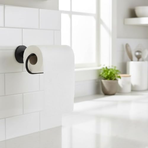 Mat Siyah Kağıt Havluluk – Duvara Monte Metal Tuvalet Kağıdı, Kağıt Havlu Askısı 25 cm, Güçlü Yapışkanlı Duvara Montaj
