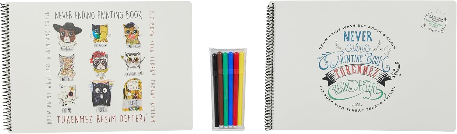 Tükenmez Resim Defteri Tükenmez Defter Yıkanabilir Defter Akademi Çocuk Mat Mat Tükenmez Resim Defteri, 2'li Set & 6'lı Kalem Set Mat Tükenmez Resim Defteri, 2'li Set & 6'lı Kalem Set