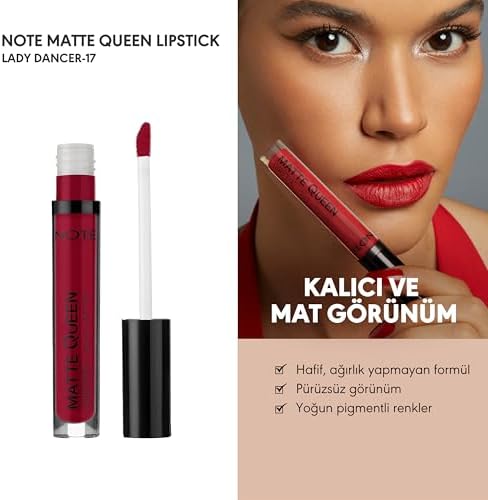 Mat bitiş Uzun süre kalıcılık Yüksek pigmentli renkler Paraben içermez Dermatolojik olarak test edilmiştir Matte Queen Lipstick 17 Lady Dancer Kalıcı Likit Ruj, Kırmızı Matte Queen Lipstick 17 Lady Dancer Kalıcı Likit Ruj, Kırmızı