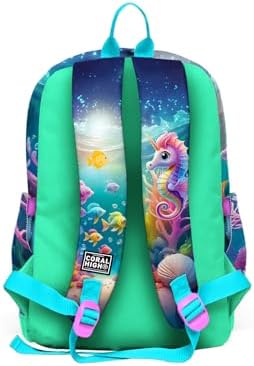 Mavi Su Yeşili Denizatı Desenli Dört Bölmeli Okul Sırt Çantası 23772
