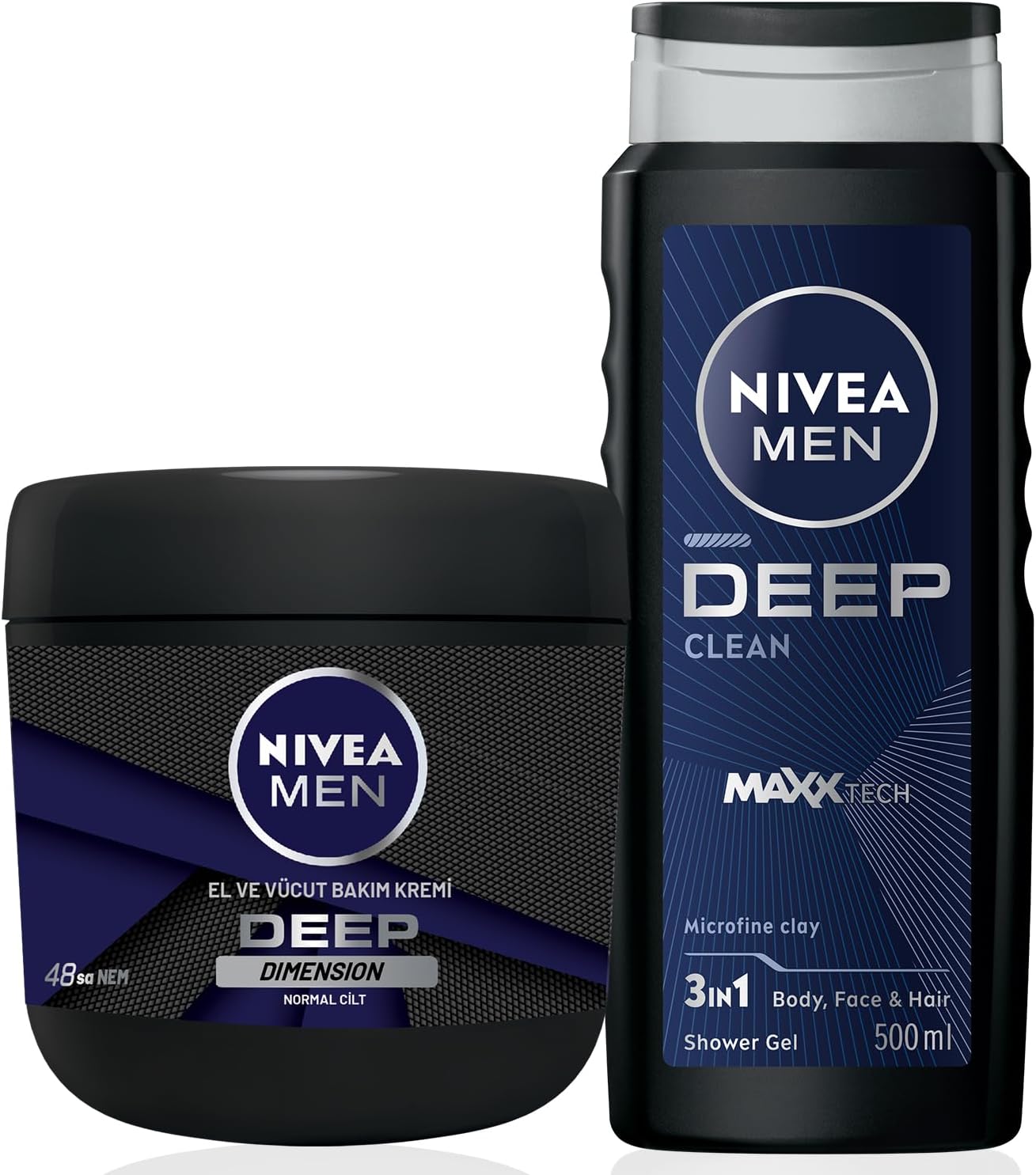 MEN Erkek Damat Çeyiz Seti Deep Dimension Duş Jeli 500ml ve Nemlendirici El Vücut Bakım Kremi 400ml