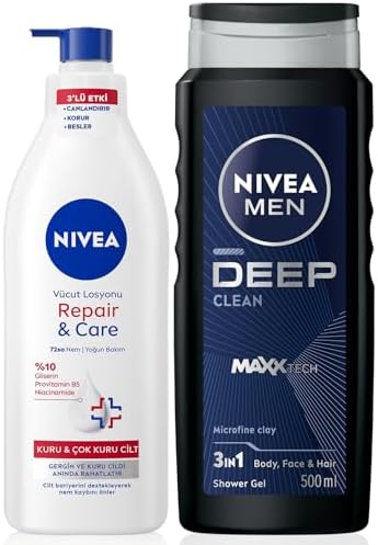 MEN Erkek Deep Dimension Duş Jeli 500ml ve Repair&Care Nemlendirici Vücut Losyonu 400ml, Kuru Cilt