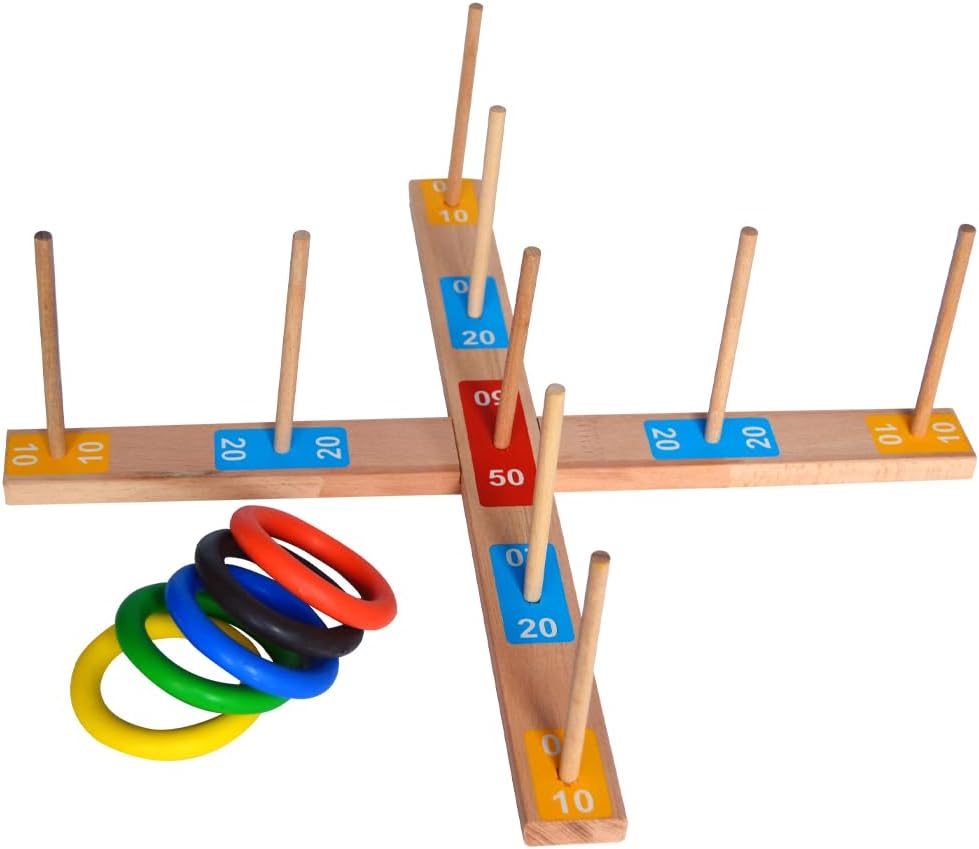 Mesafe belirlendikten sonra 5 adet halkayı tek tek oyun tablasına atın. Oyun tablası üzerinde 10-20-50 rakamları bulunan hangi çubuktan halkayı geçirirseniz o kadar puan kazanırsınız. Mesafe Oyunu (Kapak değişebilir)