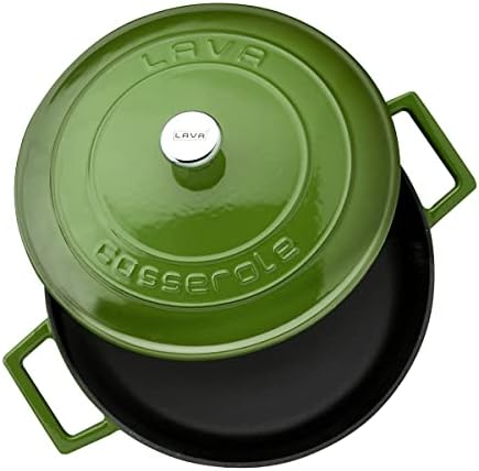 Çok Amaçlı Tencere Yuvarlak 24 cm Döküm Demir Yekpare Kulplu 3 Kat, 2 Fırın Döküm Demir Folk Kapak Metal Tepe Metal Döküm Çok Amaçlı Yayvan Tencere, Trendy, 24 cm, 2.47 L, Yeşil