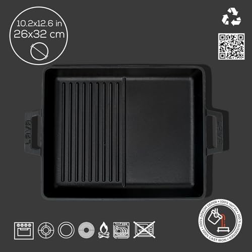 Izgara Tavası Dikdörtgen 26×32 cm Döküm Demir Yekpare Kulplu 1 Kat, 1 Fırın Metal Döküm Izgara Tava, Metal Kulplu, 26x32cm, Siyah Metal Döküm Izgara Tava, Metal Kulplu, 26x32cm, Siyah