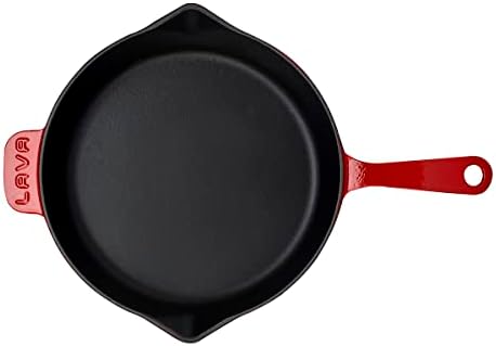 Kızartma Tavası Yuvarlak 28 cm Döküm Demir Yekpare Saplı 3 Kat, 2 Fırın Metal Döküm Kızartma Tavası, 28 Cm, Kırmızı/Siyah